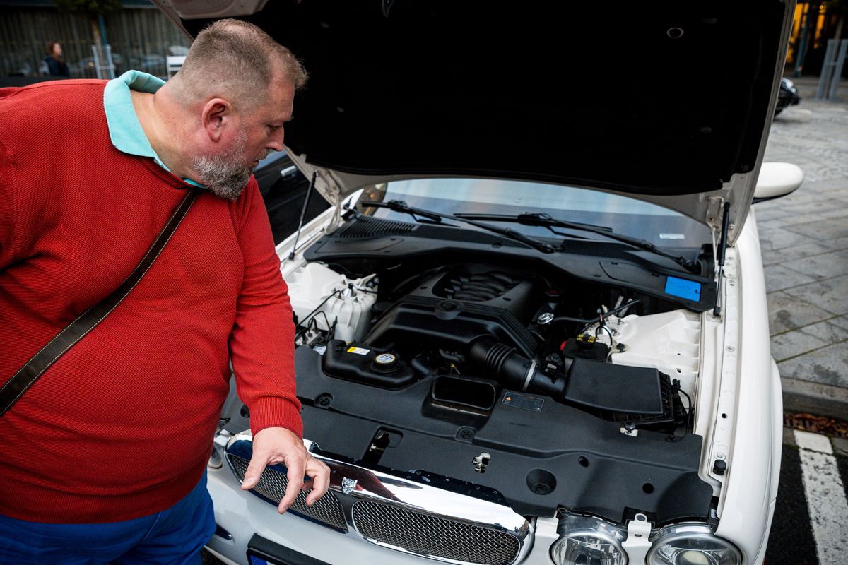 Po chvilce přijde další muž, podle oblečení tentokrát přímo člen Jaguar clubu. Ptá se, jestli si chceme automobil, vedle kterého stojíme, vyfotit. „Je to drahý koníček, naposledy jsem dal do servisu 100 litrů,“ přibližuje. Přidává se k němu kolega, podle svých slov nadšený milovník luxusních aut. Reportérům ukazuje historické auto, které má patřit jeho otci.