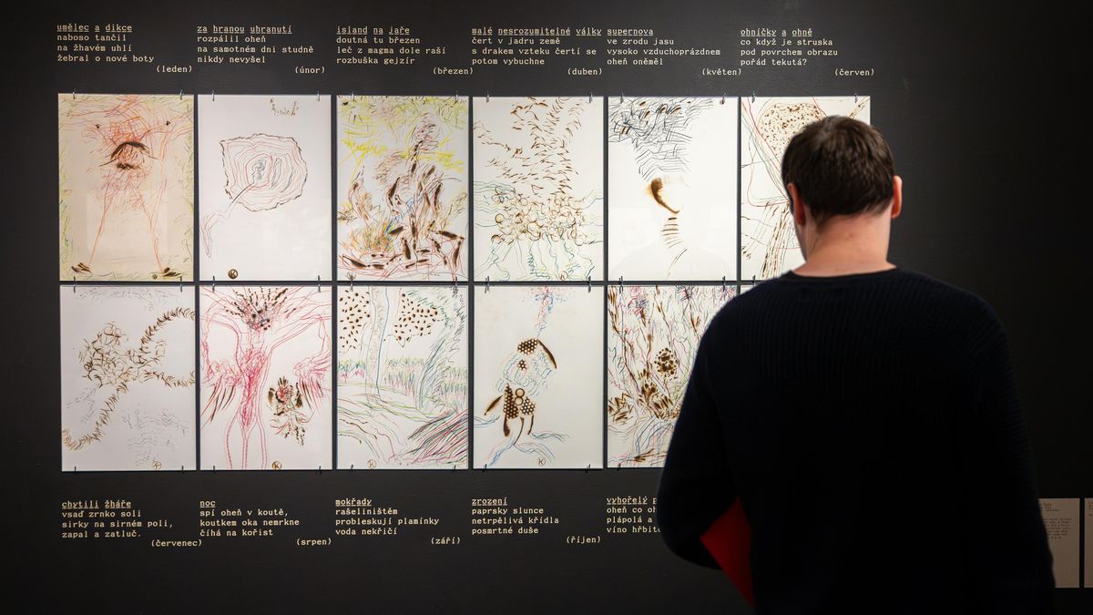 „Naše výstava představuje především autorovy kresebné cykly, jejichž společným jmenovatelem je prvek ohně,“ doplňuje mluvčí galerie Kateřina Štulc Modrá.
