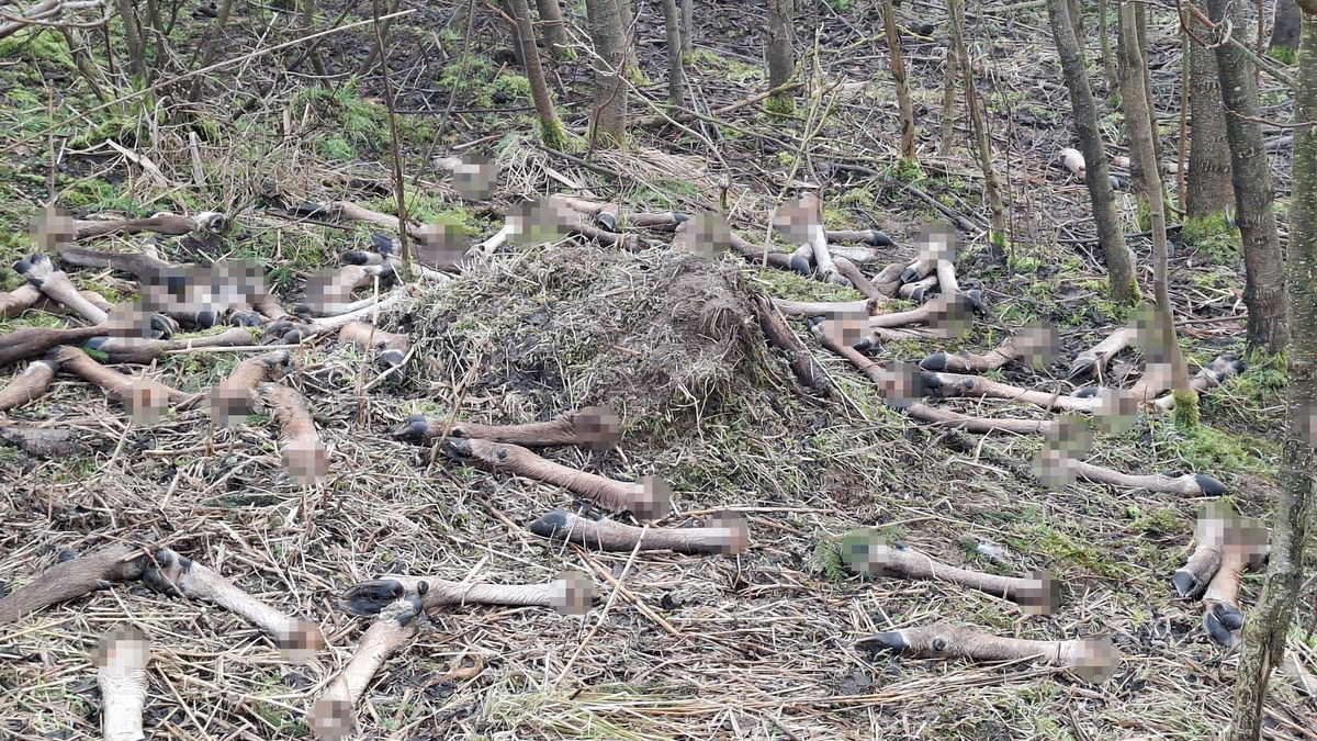 „Představte si, střelíte na naháňce 30kusů vysoké, to maso jde převážně na výkup. Jenže tam se to dává bez hlavy a bez zadních a předních běhů, takže ty zbytky asi někdo vysypal do lesa,“ uvažuje nahlas starosta Radek Lípa. Správně by se měly pozůstatky zakopat nebo odvézt do kafilerie.