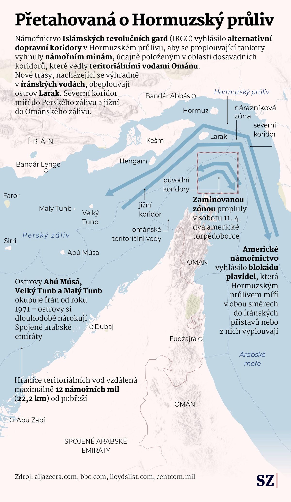 Jde vlastně o blokádu blokády. Íránské revoluční gardy – hlavní ozbrojená složka režimu – totiž už od začátku března brání v používání průlivu tankerům ze zemí, jež jsou spojenci USA, například Saúdské Arábie, Kataru nebo Spojených arabských emirátů. Pouští pouze plavidla, která převážejí ropu z íránských přístavů.