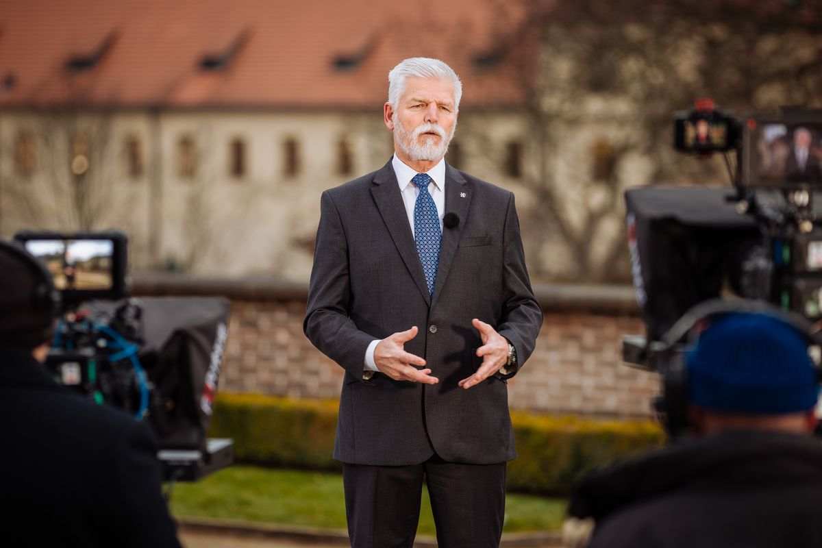 Prezident Petr Pavel při natáčení novoročního projevu.