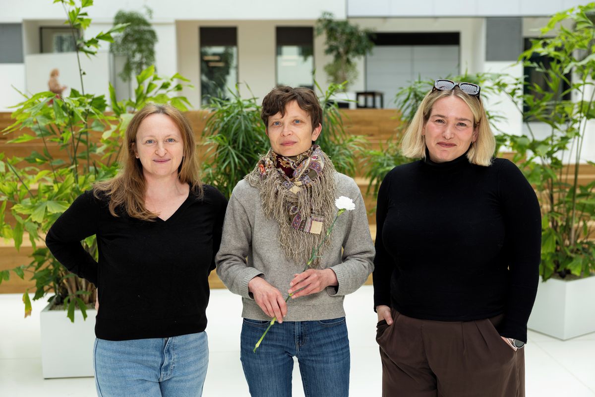 Zleva: Moderátorka podcastu MDŽ Lenka Kabrhelová, rusistka, filoložka a prozaička Alena Machoninová a moderátorka a šéfeditorka Seznam Zpráv Veronika Lehovcová Suchá