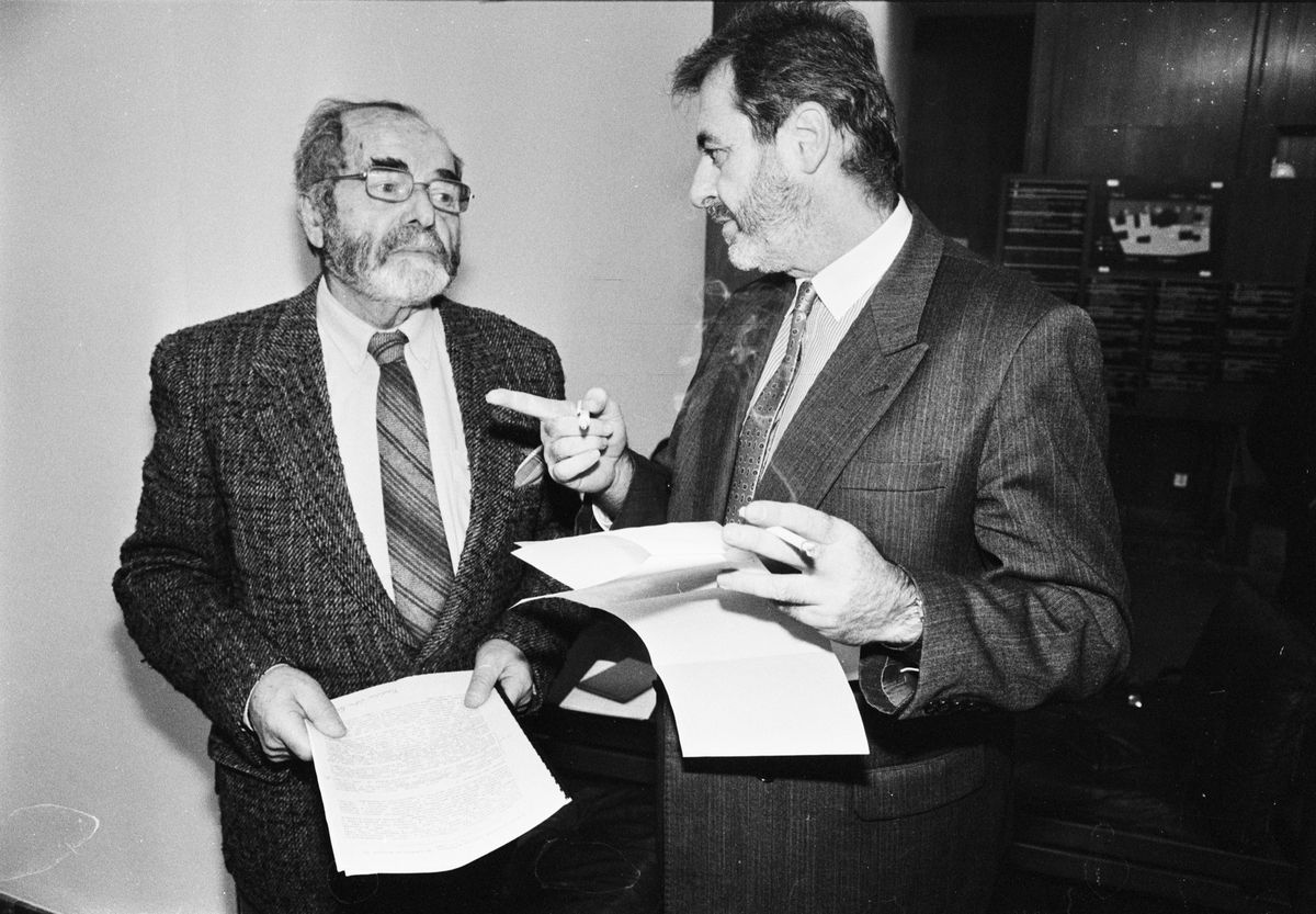 Prosinec 1994. Michal Prokop v roli náměstka ministra kultury Pavla Tigrida.