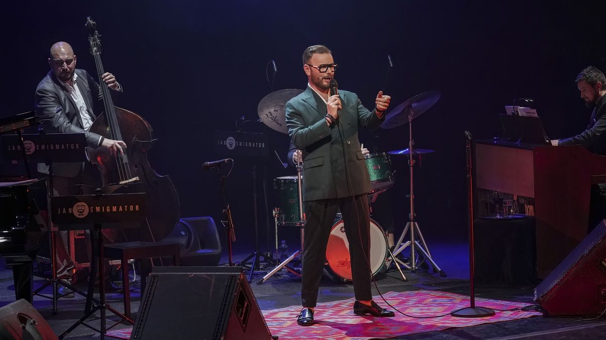 První český swingový zpěvák v Carnegie Hall. Pár týdnů po newyorském vystoupení si Jan Smigmator tento úspěšný koncert zopakoval také v pražském divadle Hybernia (snímek z května 2023).