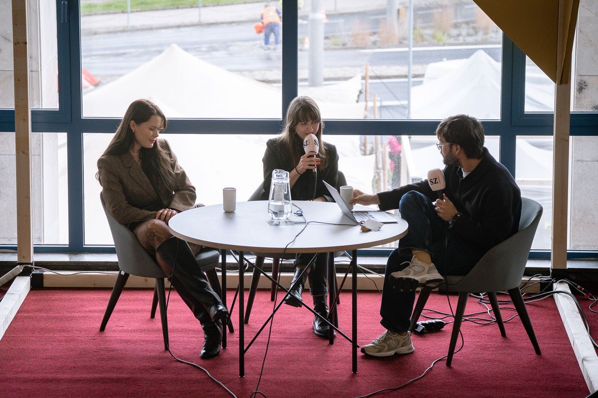 Zleva sedí Rosalinda, režisérka Barbora Chalupová a moderátor Jonáš Zbořil.