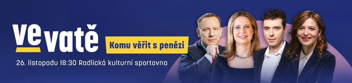 Přijďte na natáčení podcastu Ve vatě. Téma: Lesk a bída finančního poradenství. Hosté: Petr Borkovec z Partners, finanční poradkyně Michala Janatová a investor a expert Ve vatě Lukáš Nádvorník. Vstupenky v síti Ticketmaster.
