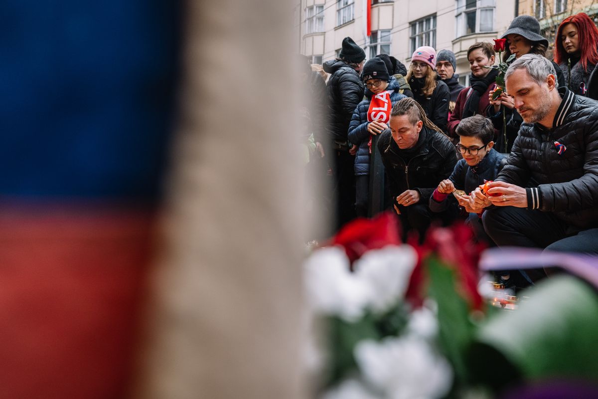 „Je to ostuda, aby sem předseda Sněmovny nepřišel položit věnec nebo aspoň zapálit svíčku,“ řekl končící ministr vnitra Vít Rakušan (STAN) u památníku s odkazem na Tomia Okamuru (SPD).