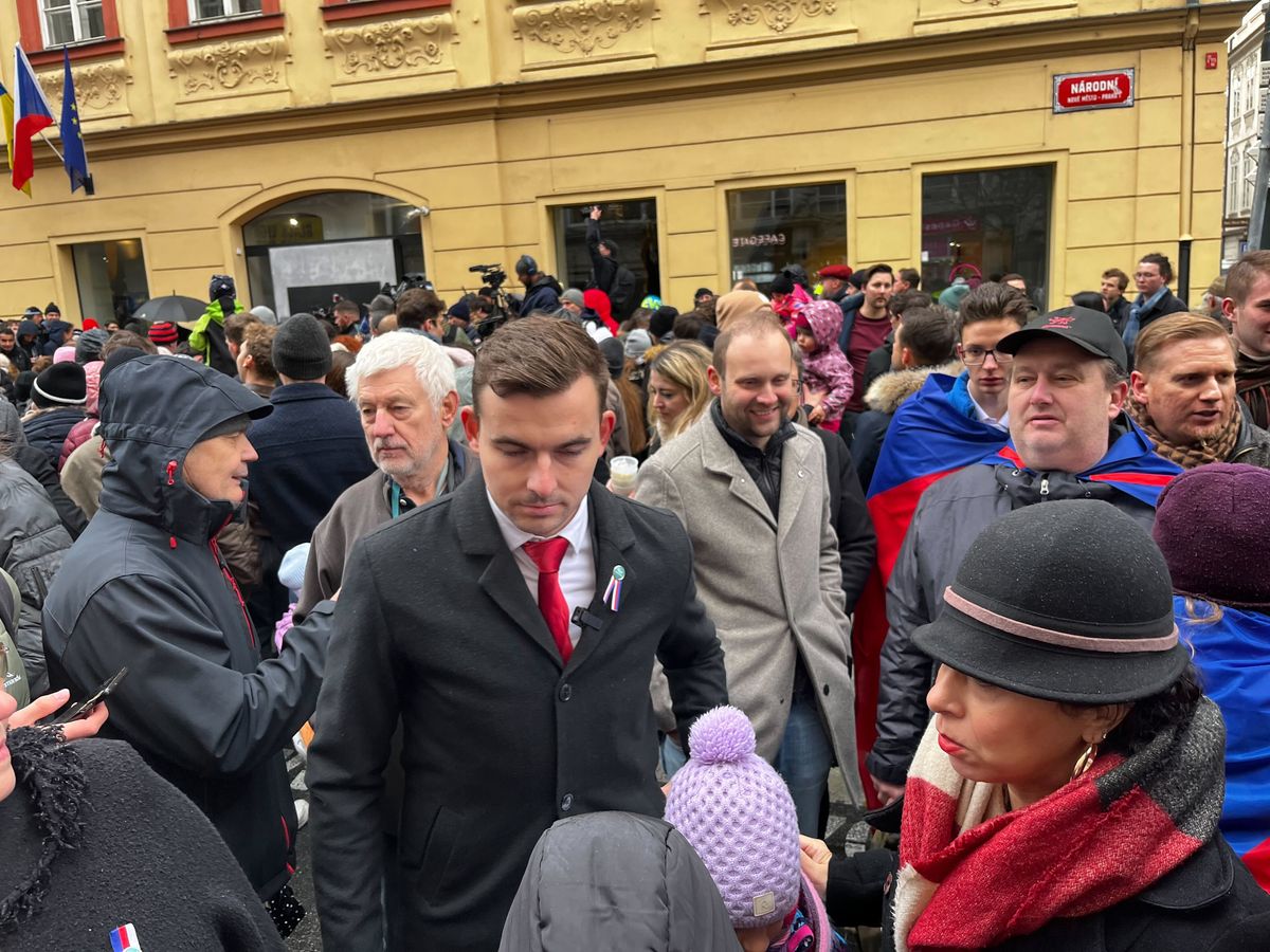 „V jedné větě vám tyto lidé říkají o důležitosti demokracie a svobody, a pak vás pomalu ani nenechají položit svíčku,“ kritizoval protestující poslanec Matěj Gregor. „Pro mě jako studenta je důležitá také připomínka listopadu 1939, kdy nacisté zavřeli vysoké školy a vysokoškoláky stejně staré jako já odvezli do koncetračních táborů,“ dodal Gregor k dotazu, jak osobně vnímá svátek.