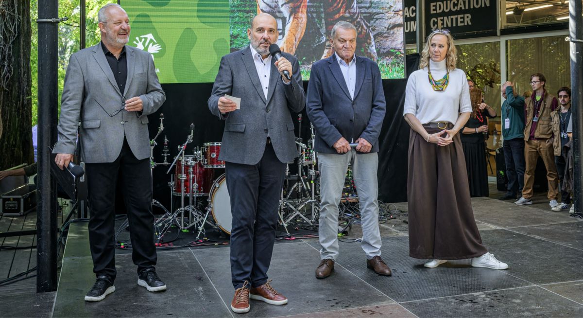 Slavnostní zahájení 94. výroční slavnosti Zoo Praha. Na snímku jsou zprava náměstkyně primátora pro oblast životního prostředí Jana Komrsková, primátor Bohuslav Svoboda, ředitel Zoo Praha Miroslav Bobek a moderátor Jan Kovařík.