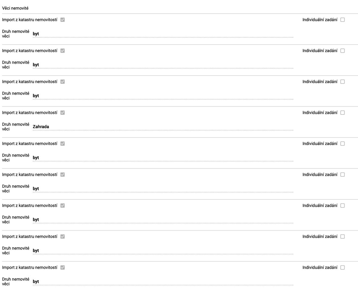 Majetkové přiznání Aleše Juchelky, v němž uvedl, že vlastní osm bytů.