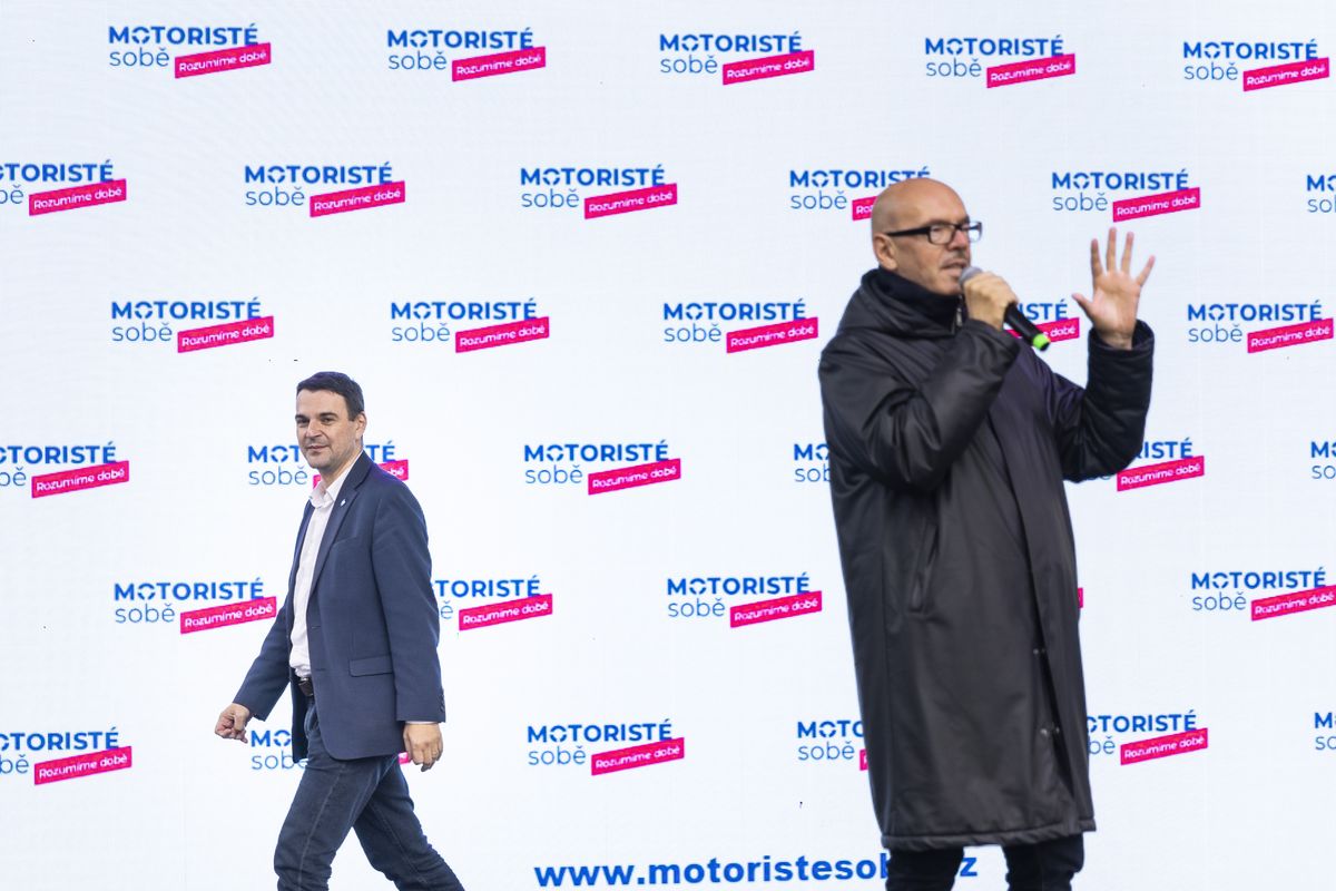 Oto Klempíř během volební kampaně a za ním šéf strany Motoristé sobě Petr Macinka.