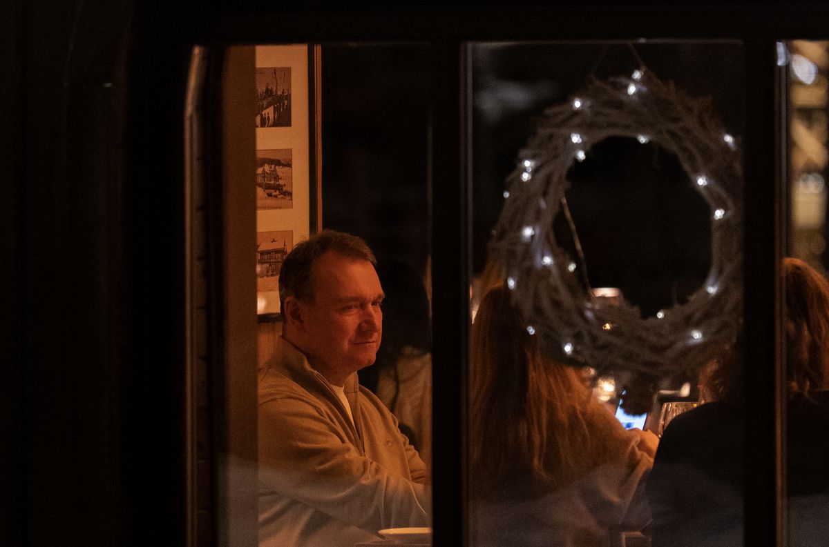 Radim Fiala během večeře v restauraci Savoy v centru Špindlerova Mlýna. V komplexu využívá i apartmán, jehož vlastníkem je jeho „bývalá“ firma B.S. - Kings.