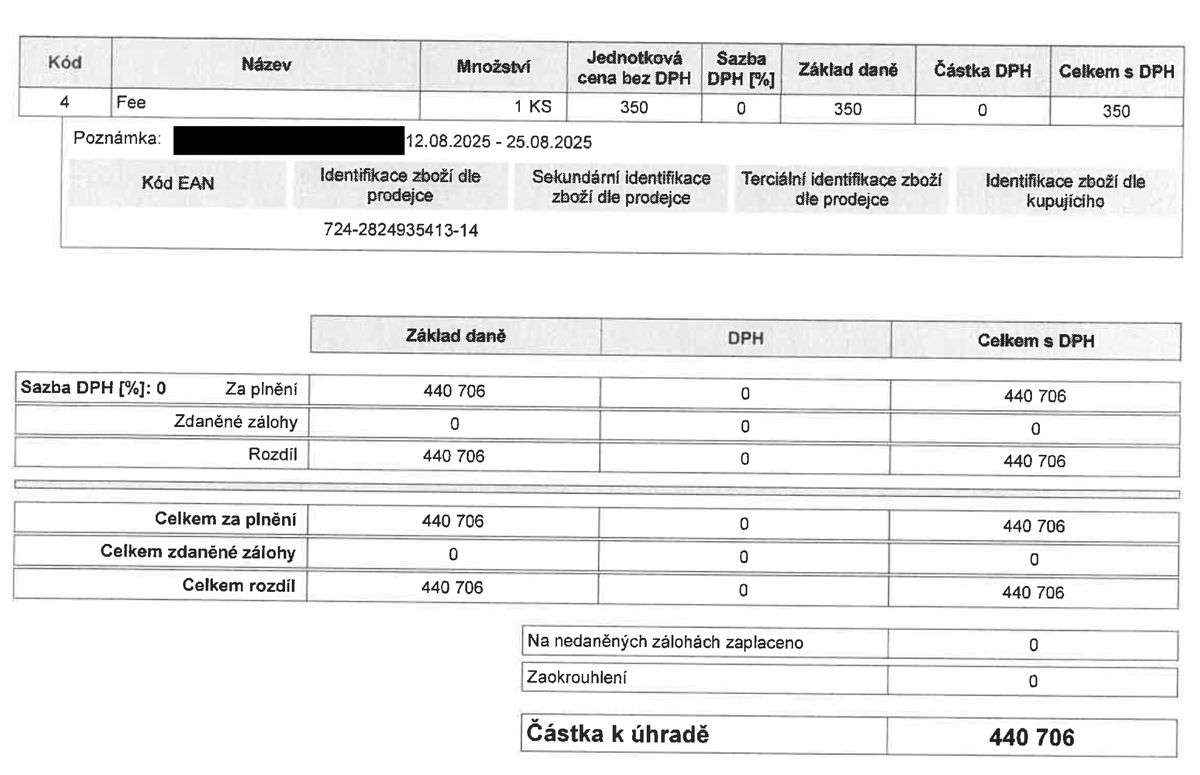 Kopie faktury za letenky do Spojených států, kterou poskytla ČNB podle informačního zákona.