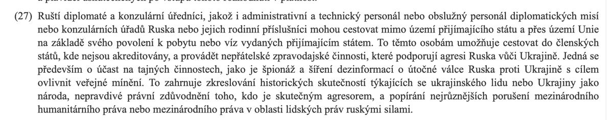 Jak důvody opatření proti ruským diplomatům popisuje sankčního balíček EU z 23. října 2025.