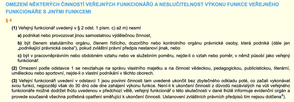 Ze zákona o střetu zájmů: Pravidla, která platí pro ministry.