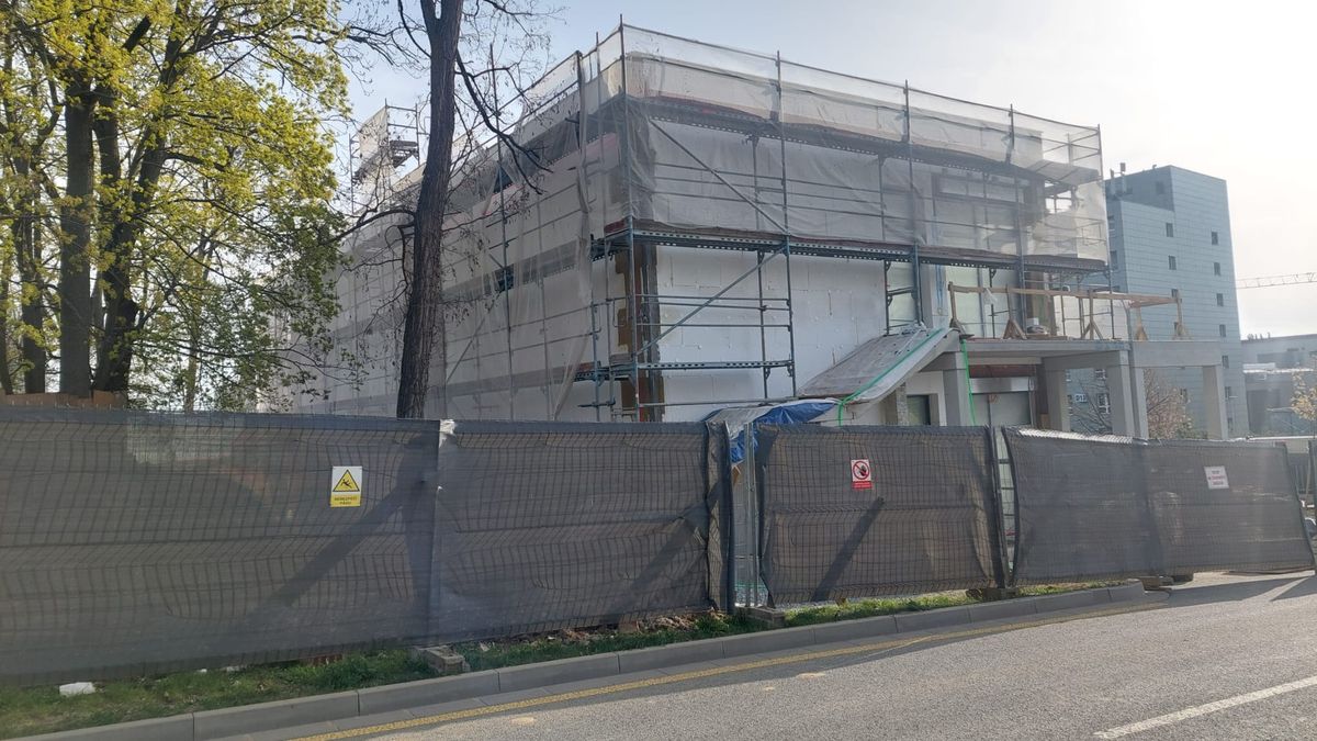 Olomoucká fakultní nemocnice dokázala ve svém areálu postavit novou budovu – stravovací zařízení pro pacienty i personál – za necelý měsíc od získání pravomocného stavebního povolení. Stavba dostala od úřadu razítko 17. března a dnes už se objekt zatepluje.