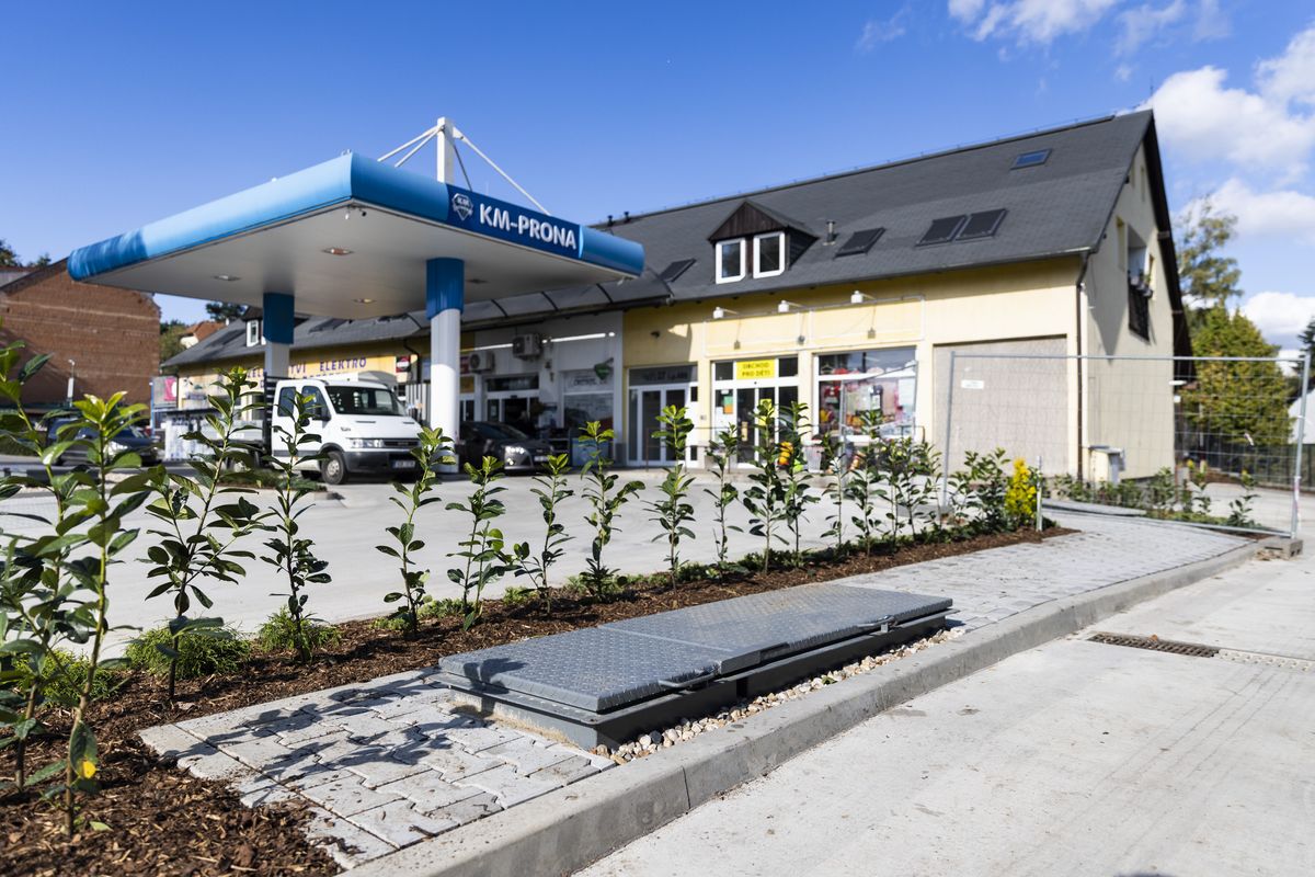 Přestavěná pumpa po dokončení. Došlo mimo jiné k přesunu stáčecího místa, kam zajíždějí autocisteny s PHM.