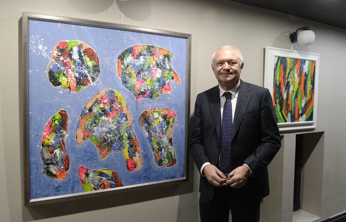 Jaroslav Faltýnek opět vystavuje obrazy. Dlouholetý činovník hnutí ANO a amatérský malíř, který si říká Mazal z Hané, svá nejnovější abstraktní díla prezentuje v domácím prostředí prostějovského zámku.