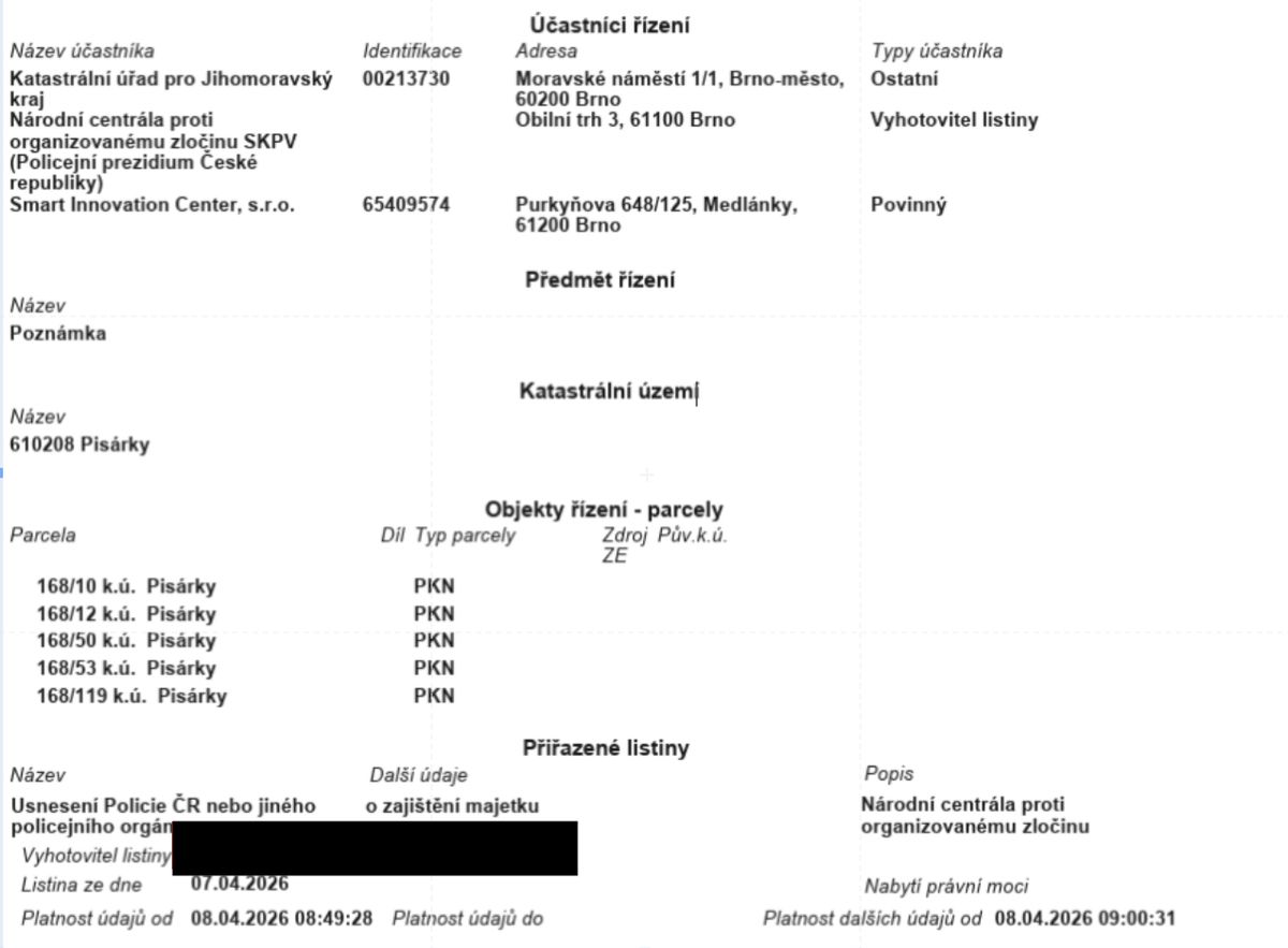 Seznam Zprávy v pátek z katastru nemovitostí zjistily, že jde o kancelářskou budovu Smart Park, či Nový Tuzex, v Brně, kousek od místního výstaviště.