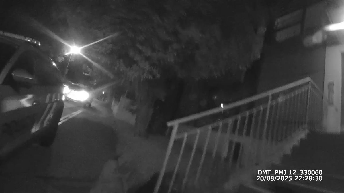 Obraz kamer je černobílý, přizpůsobený nočnímu vidění. Je středa 20. srpna letošního roku, pár minut před půl jedenáctou večer.
