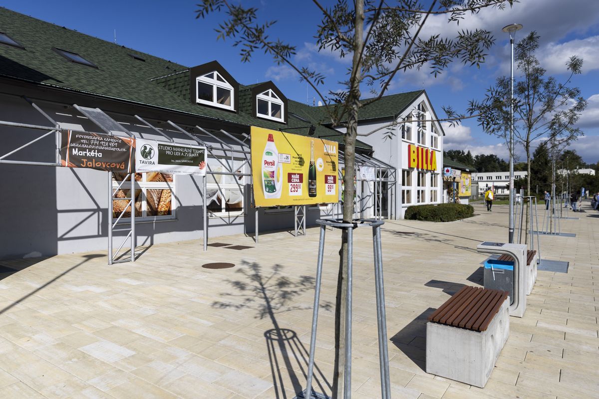 Zvelebené okolí supermarketu Billa v Kamenici. I zde loňskou investici, která zahrnovala rozšíření parkoviště, hradila obec, byť jí patří jen ideální polovina pozemku. Druhá Honzíkovým.