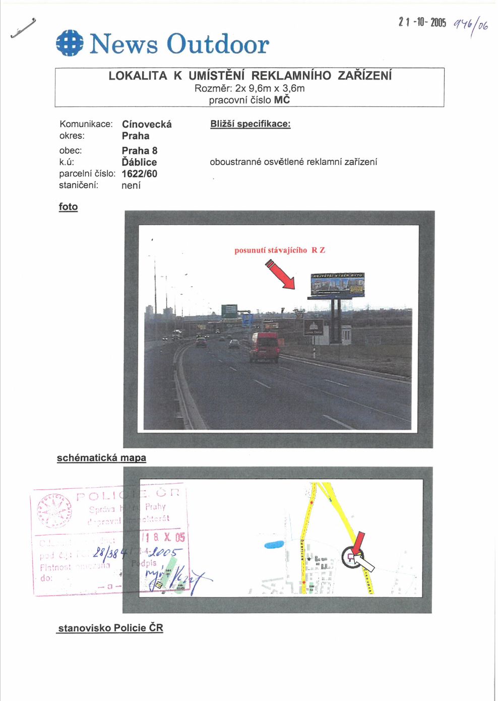Ďáblický billboard, stojící v silničním ochranném pásmu, získal loni v lednu příslušné povolení na dalších 5 let. Magistrátní úředníci ale použili jako podklad toto souhlasné stanovisko policie z roku 2005.