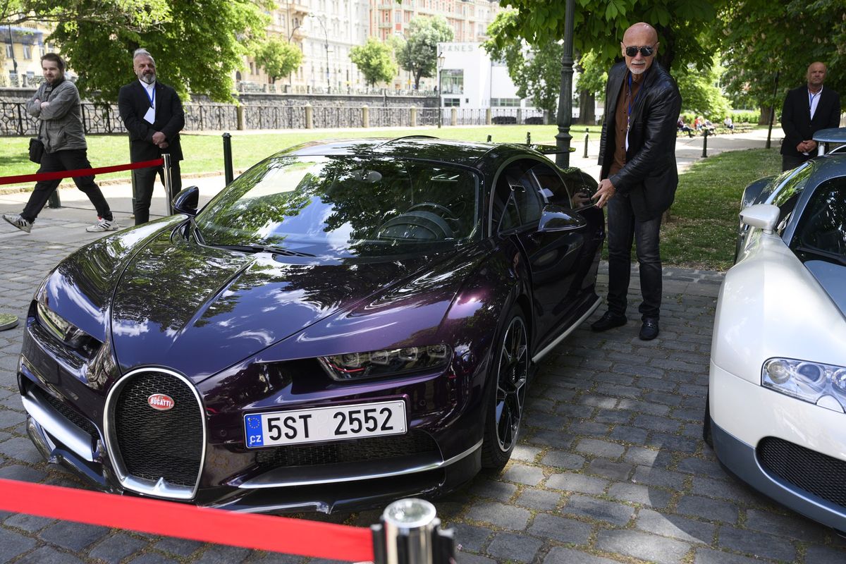 Snímek z poloviny května 2025: Patnáct let ztrátový solárník Richard Chlad přijíždí ve svém sportovním voze Bugatti Chiron na zahájení kontaktní fáze předvolební kampaně strany Motoristé sobě.