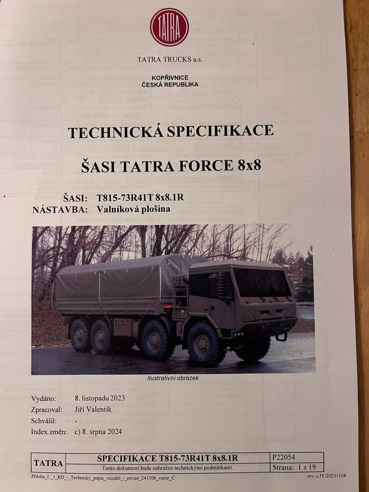 Jeho vysvětlení ovšem vzbuzuje dvě pochybnosti. Jednak automobilka Tatra původně auta ministerstvu dodávala napřímo. A za druhé, součástí obou smluv je technická specifikace dodávaného vozu. A obě technické dokumentace jsou identické. Jsou dokonce datovány ve stejný den: 8. listopadu 2023. Autorem obou je nadto Jiří Valentík, což je zaměstnanec Tatra Trucks.