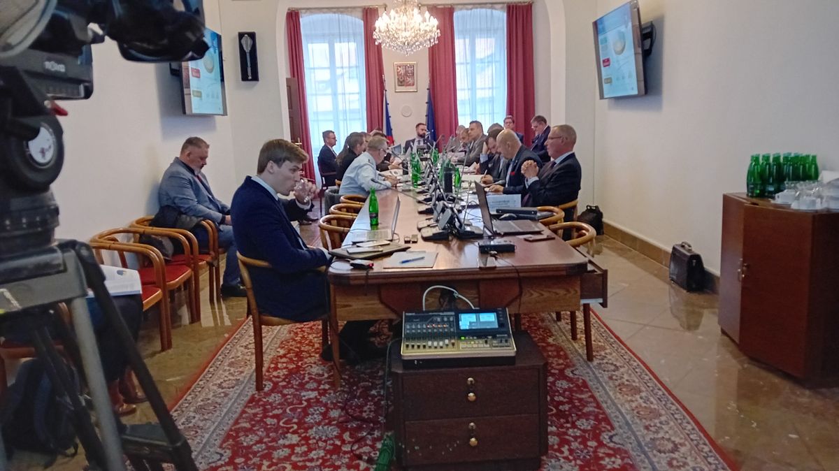 Denis Melas (se sklenkou) ve vyhrazené zóně. U stolu poslanců při úterním jednání sněmovního výboru pro obranu.
