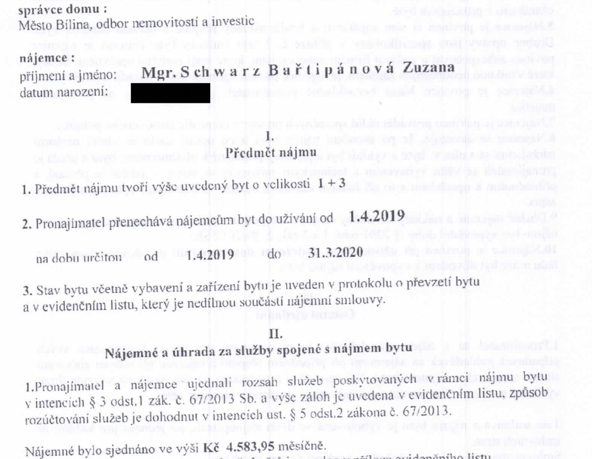 Jak ale nyní zjistily Seznam Zprávy, sama ve svém sociálně slabém městě dlouhé roky obývá obecní byty s nájmem ve výši jen několika tisíc korun měsíčně, ačkoli už řadu let hospodaří s platem, který násobně překračuje příjem průměrného obyvatele Bíliny.