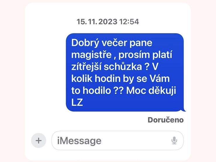 Ke schůzce, kterou mu opakovaně ve zprávách navrhovala, nedošlo, radní neměl stále čas. „Nakonec jsme si volali, všechno jsem mu řekla a on už se mi nikdy neozval a na zprávu nereagoval,“ dodala Veselá, jejíž slova potvrzuje uložená konverzace.