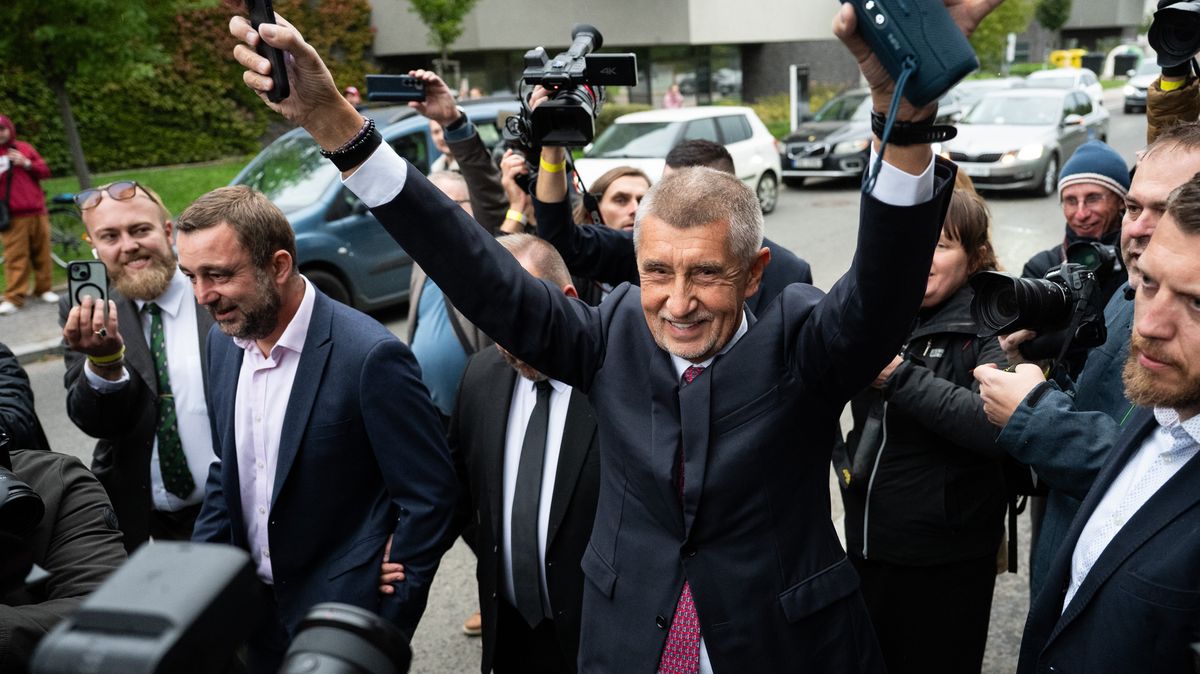 Předseda vlády Andrej Babiš (ANO) při oslavách vítězství ve volbách do Poslanecké sněmovny.