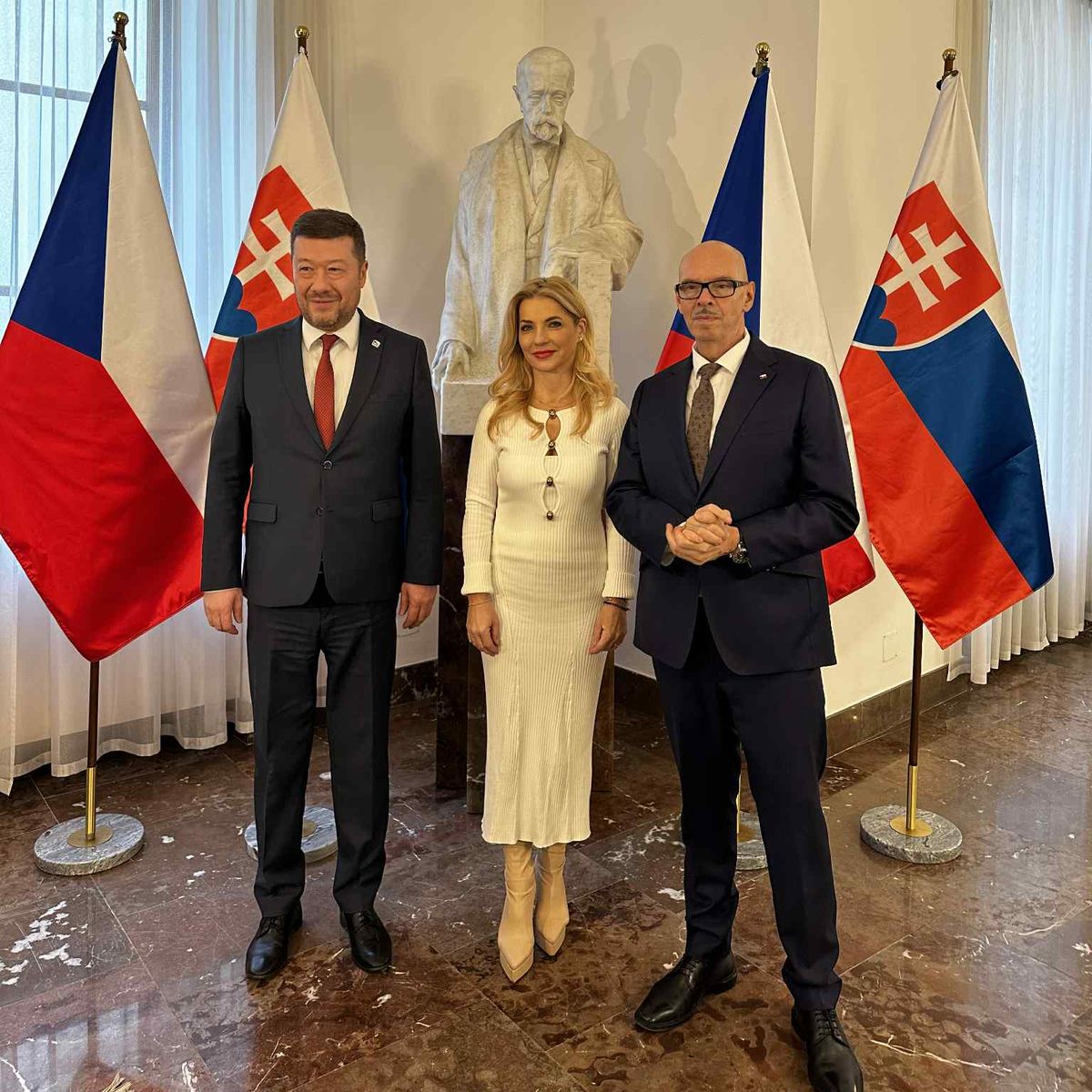 Jak to bude s poplatky? Možná to ví trio šéf Sněmovny Tomio Okamura, slovenská ministryně kultury Martina Šimkovičová a její český protějšek Oto Klempíř.
