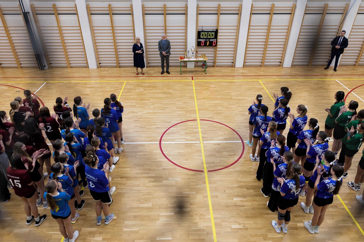 Ještě než Pavel dorazil na klíčový bod programu, tedy debatu s osmáky a deváťáky do jedné ze tříd, přivítali ho v místní tělocvičně dívky ve sportovním úboru. „Sport mám rád, umožňuje mi na chvíli zapomenout na starosti. Trochu vám závidím, protože není asi lepší způsob, jak zahájit den než sportem,“ sdělil žačkám prezident, který zahájil turnaj v přehazované.