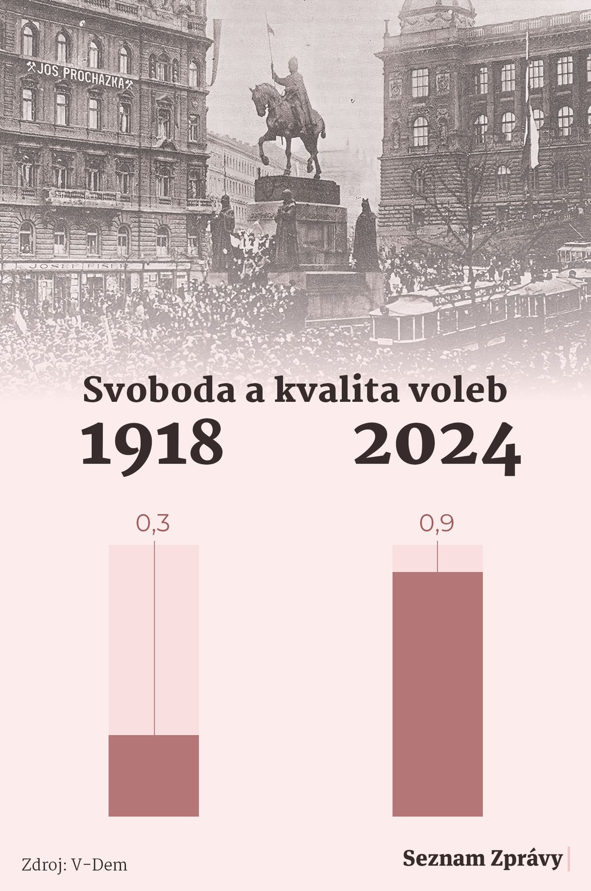 Svobodu a kvalitu voleb měří index organizace V-Dem. V roce 1918 byl na úrovni 0,3 bodu, během první republiky dosahoval hodnot 0,8. Po únorovém převratu spadl. Svobodných voleb se pak Češi a Češky dočkali až 17. listopadu 1989.
