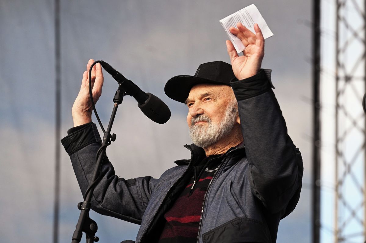 „Tolik gratulantů jsem v životě neměl,“ poděkoval herec Zdeněk Svěrák, který také vystoupil na demonstraci. Za týden oslaví devadesátiny.