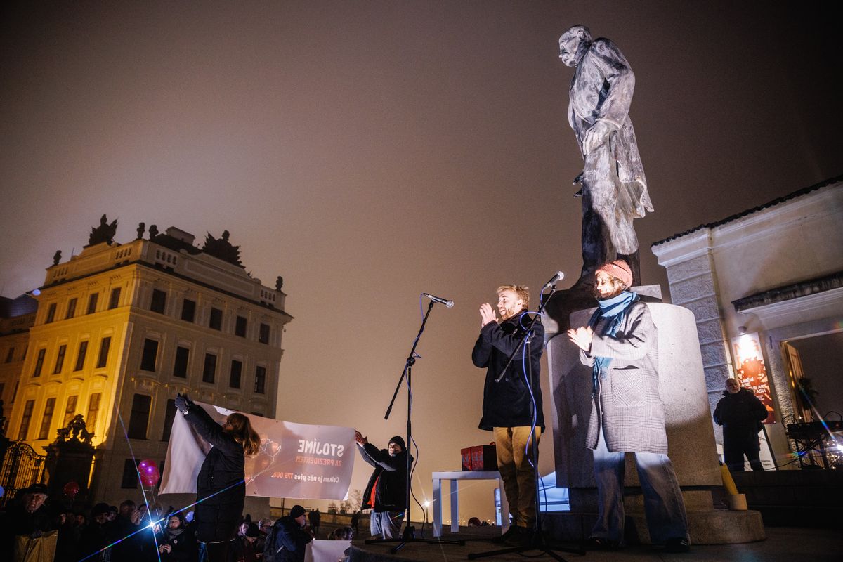 „Vážený pane prezidente, my, níže podepsaní občané, chceme ocenit Váš pevný a rozvážný postoj, s nímž vytrvale chráníte principy, na kterých stojí náš demokratický stát,“ začíná výzva Stojíme za prezidentem, kterou již podepsalo přes 175 tisíc lidí. Právě tuto výzvu aktivisté ze spolku Milion chvilek pro demokracii ve čtvrtek večer symbolicky předali prezidentu Petru Pavlovi pochodem na Hrad.