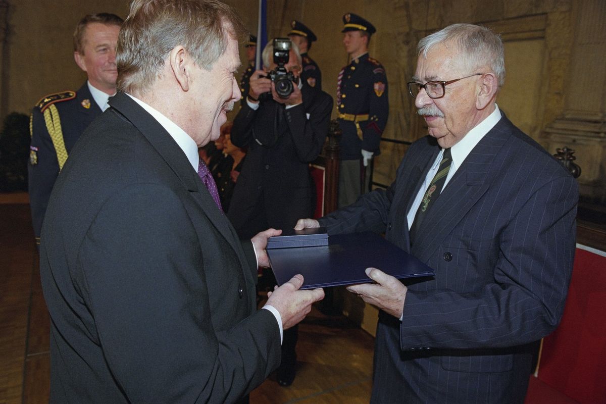 Velmi rád jsem rovněž vyhověl přání naší armády a snad poprvé v historii prezident republiky vyznamenává i nevděčnou funkci náčelníka generálního štábu. A to dokonce hned dvou. Jednak toho, kdo velel generálnímu štábu za první republiky a výrazně přispěl ke zvýšení bojeschopnosti tehdejší československé armády, nu a jednak i toho, který po listopadové revoluci se zasloužil, pane generále, o demokratizaci této armády. Vojákům samozřejmě patří i ocenění našeho odboje. A jsem rád, že mohu napravit jeden dluh. Generál Kutlvašr, velitel pražského povstání, byl neoprávněně perzekvován, místo abychom ocenili jeho zásluhy. Proto bude dnes vyznamenán nejvyšším českým řádem vojenské třídy. K vojákům svého druhu patří i člověk, který je také mezi námi ve svěžím věku 90 let. Je to bývalý osvětimský vězeň, který v 17 letech uprchl z Osvětimi, vzal do ruky zbraň a bojoval za svobodu své vlasti. Když ale vzpomínáme na minulost, dovolte mi ještě jednu hlubší sondu.
