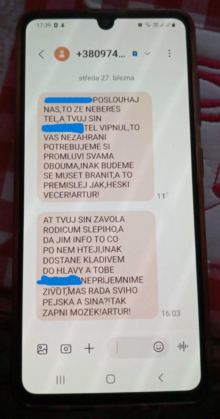 „Poslouhaj nás. Mas to, ze neberes telefon a tvůj sin tel vipnul, to vas nezahrani. Potrebujeme si promluvit svama obuma, inak budeme se muset bránit, a to premislej jak.“