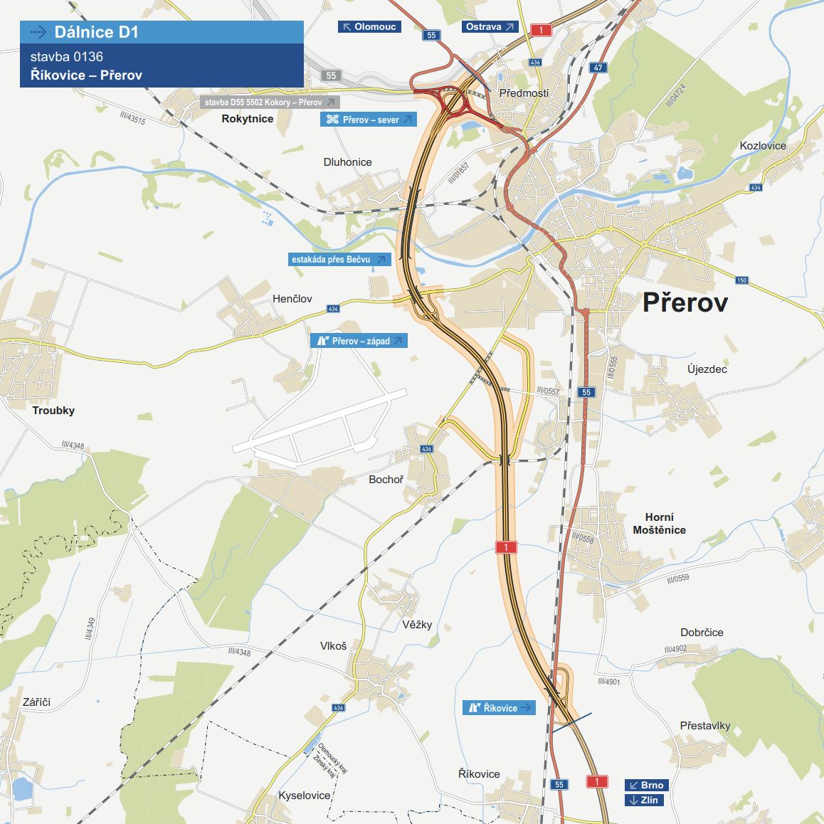 Více než deset kilometrů dlouhý úsek mezi Přerovem a Říkovicemi zkompletuje 376 kilometrů autostrády. Její plány na výstavbu v jiné trase začaly už před druhou světovou válkou, první úsek po dlouhé odmlce ale dělníci začali stavět až v roce 1967.