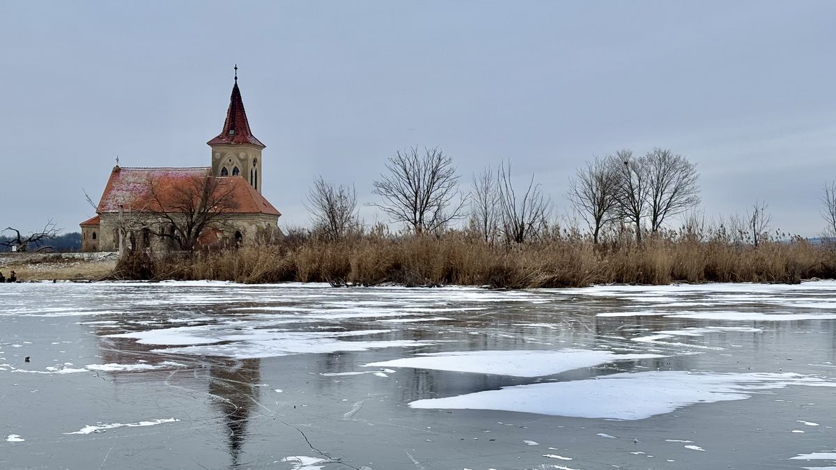 Průhledný led místy jako sklo. Nádherné výhledy na okolní pálavské kopce. A opuštěný kostel svatého Linharta jako pozůstatek obce, kterou před lety zaplavily masy vody. Silné mrazy přilákaly stovky lidí na Novomlýnské nádrže navzdory tomu, že před vstupem na prostřední plochu varují ochránci přírody i představitelé samospráv.