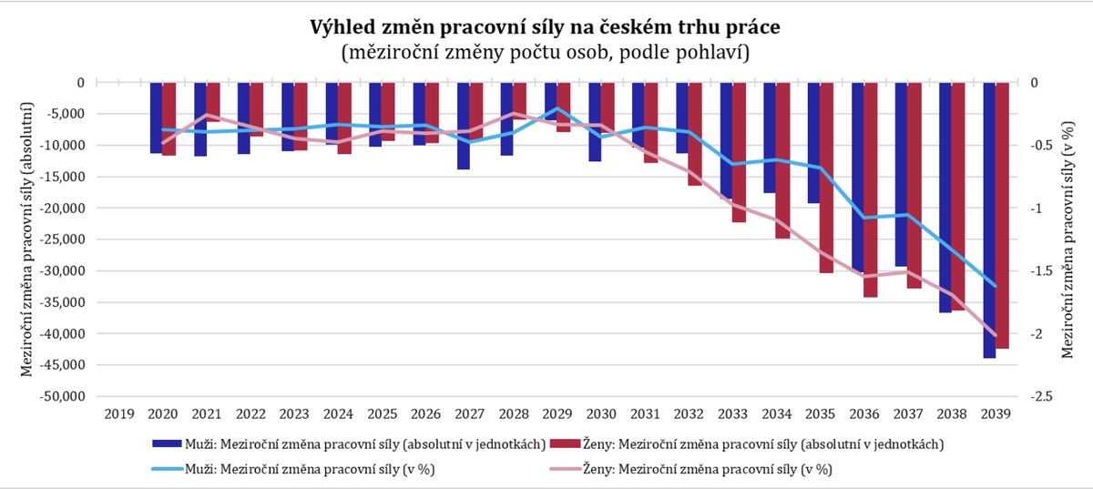 „Každý rok odchází do důchodu přibližně 120 tisíc lidí, zatímco mladých pracovníků přichází pouze 90 tisíc. Tento rozdíl se v příštím desetiletí může více než zdvojnásobit, což povede k ročnímu úbytku až 70 tisíc pracovníků. Navíc Češi ztrácejí zájem hlavně o manuální profese,“ říká Hrbáčková. Mizí tak podle ní třeba zedníci, tesaři, elektrikáři, instalatéři, ale chybí i strojní operátoři a technici.