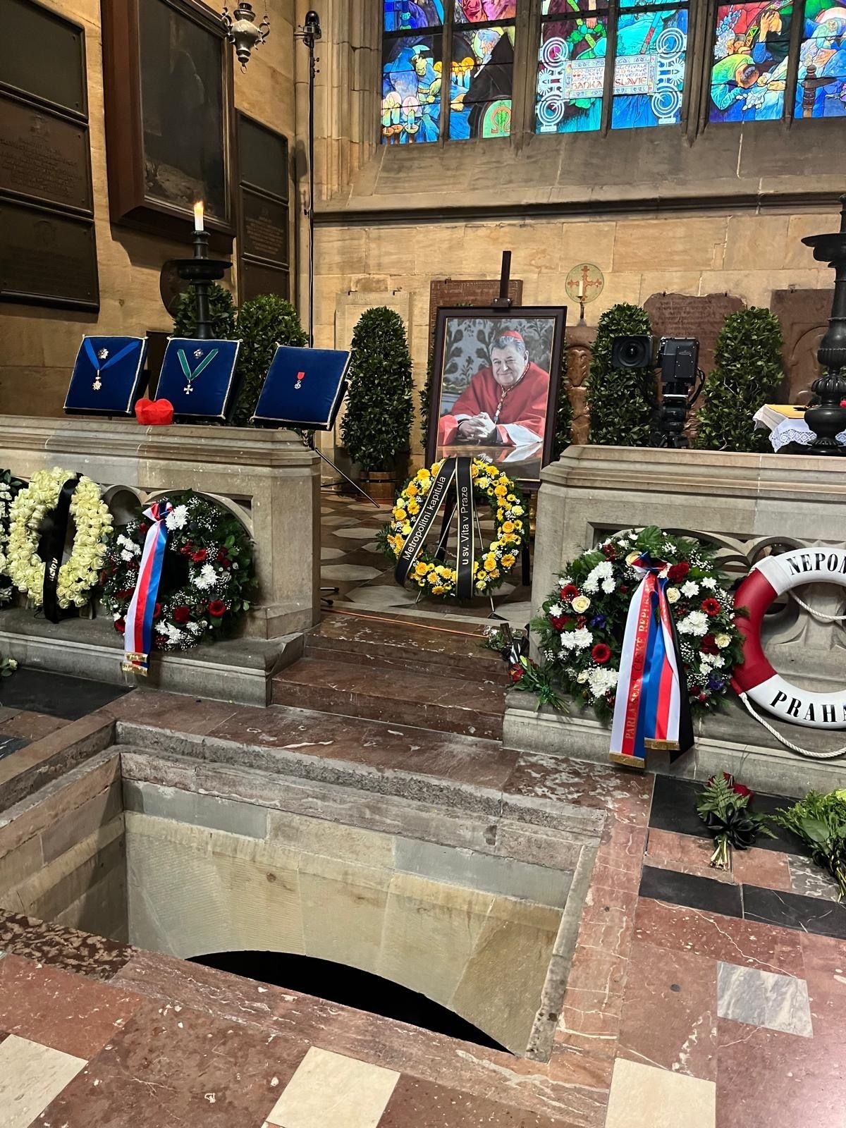 - Rekviem za kardinála celebruje pražský arcibiskup Jan Graubner, úryvek z Bible čte režisér Jiří Strach.