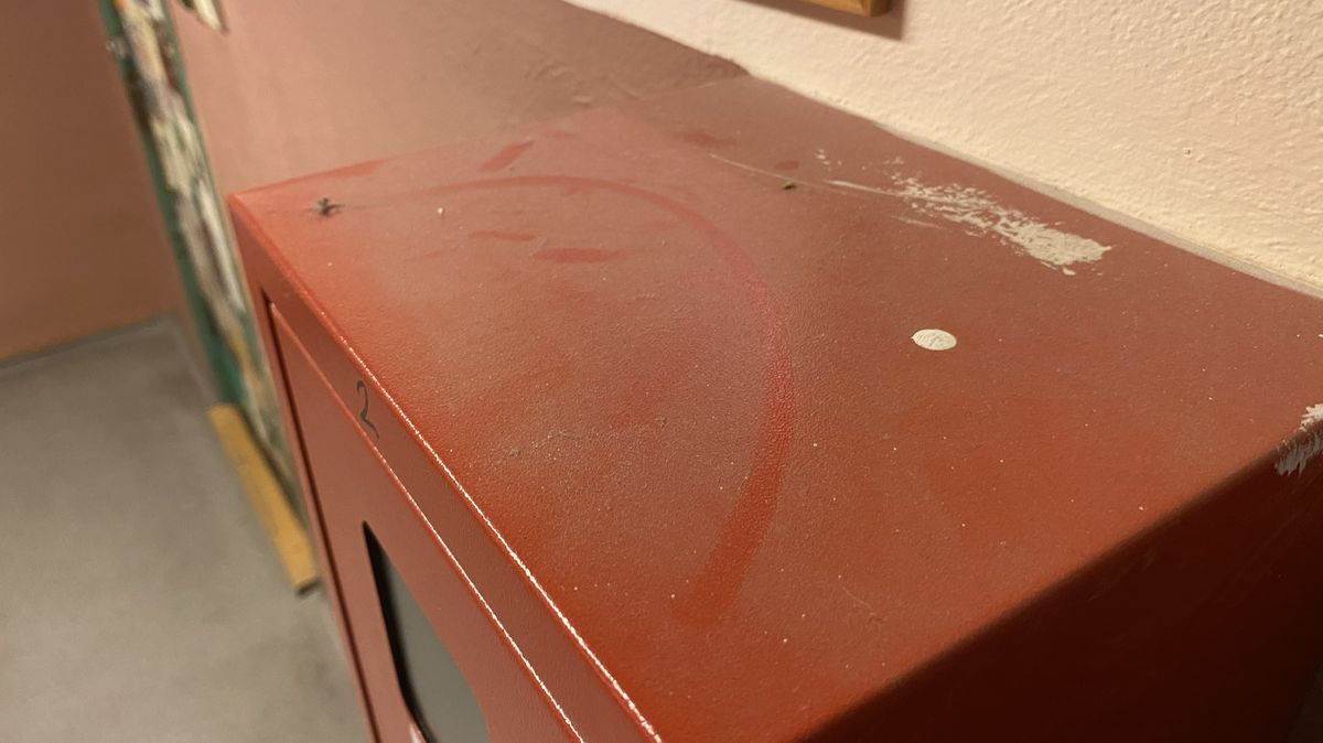 Odlámané zvonky. Nafoukaný nepořádek ve vstupní hale. Na dveřích, které oddělují využívané výtahy od chodby s jednotlivými byty, si lze přečíst vzkazy jako „Umři díky!“ nebo rovnou „Chcípněte“ a další vulgární výrazy.