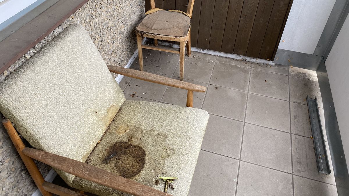 Na jednotlivých balkonech lze najít odložený nábytek, odpady, ale i odpudivě potřísněná křesílka.