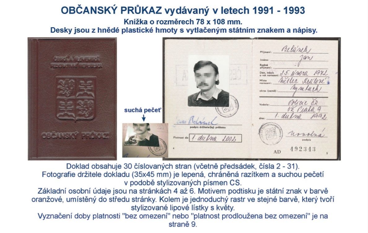 „Knížkový“ občanský průkaz z 90. let.