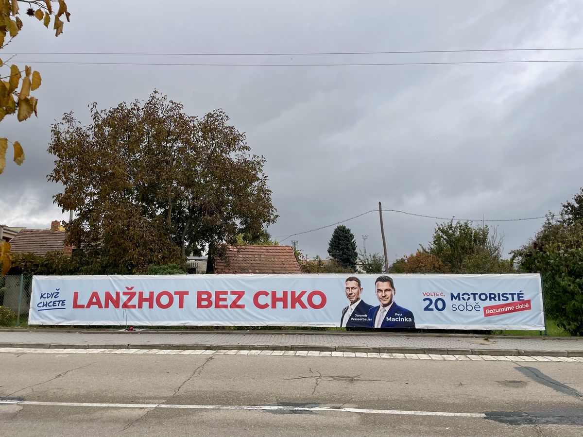 Motoristé tomu kampaň, placenou také z Fabičovicových peněz, na Břeclavsku notně přizpůsobili. I dva týdny po volbách tu visí velké plachty a billboardy.