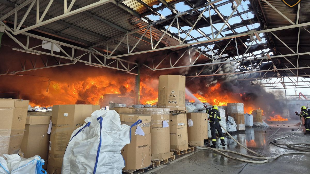 V Otrokovicích hoří zastřešený venkovní sklad, hasiči doporučují lidem nevětrat