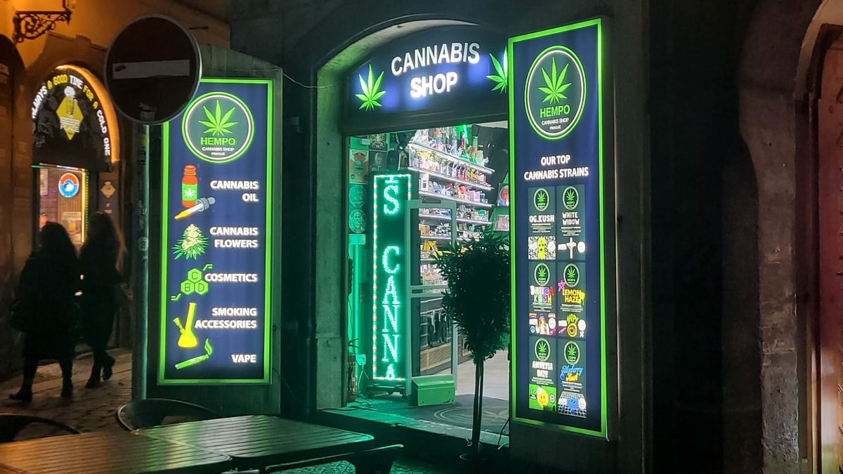 Procházkou centrem Prahy člověk u Karlova mostu narazí na konkurenční boj obchodů s konopnými produkty. Na jedné straně ulice svítí velký nápis Marihuana shop, na druhé zase bliká Cannabis point. Už z dálky bijí do očí velké pestrobarevné plakáty. „Don’t panic, it’s organic. Don’t hate, medicate“ (Nepanikař, je to přírodní. Nebuď naštvaný, užij lék), stojí na jednom z plakátů. Na druhém pak doporučuje konopí Snoop Dogg.
