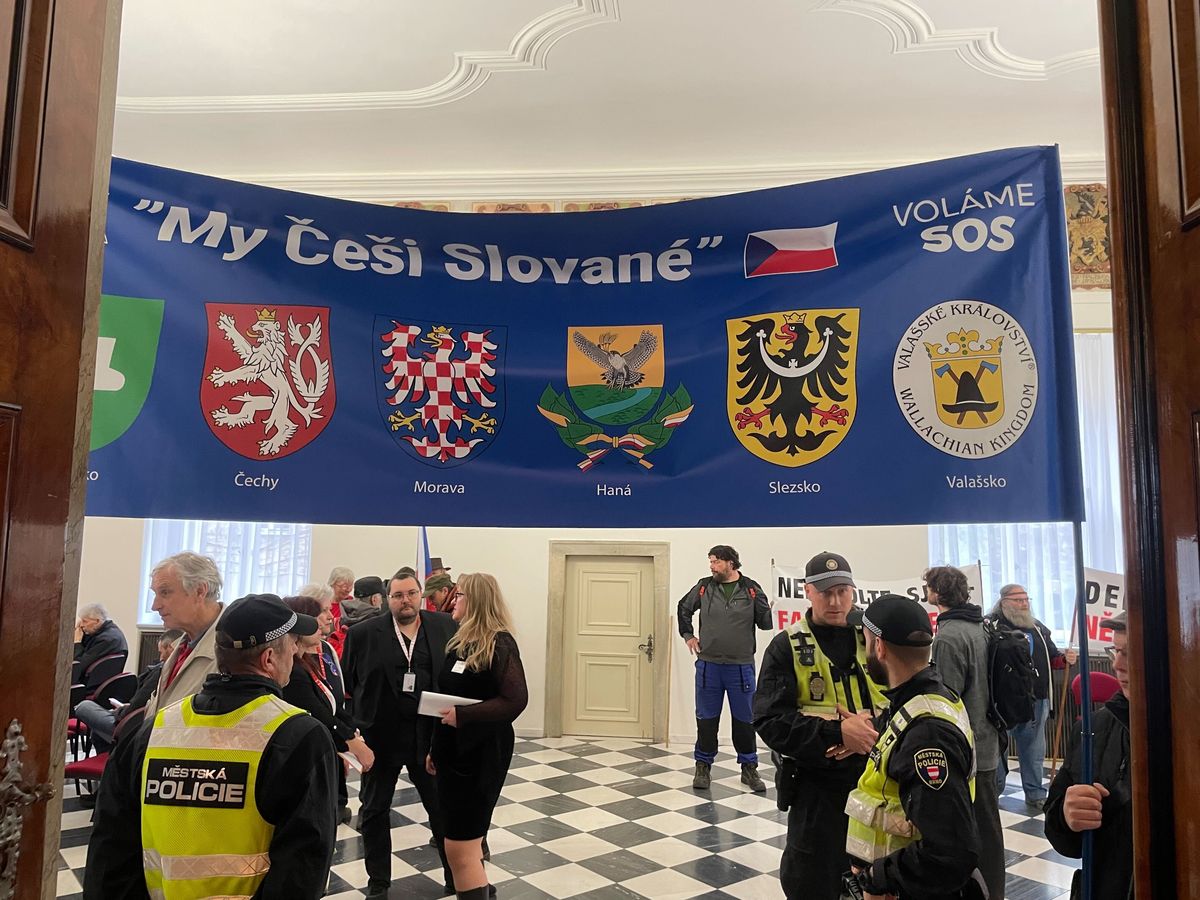Protestovat proti sjezdu dorazili lidé z celého Česka. „Jak se říká, necháme jim jeden prstíček, pak druhý a je průšvih. Republika si neuvědomuje, co by to bylo za hrůzu, kdyby došlo k prolomení dekretů,“ řekl Miroslav Lenčéš z hnutí My Češi Slované, který přijel z Českých Budějovic.